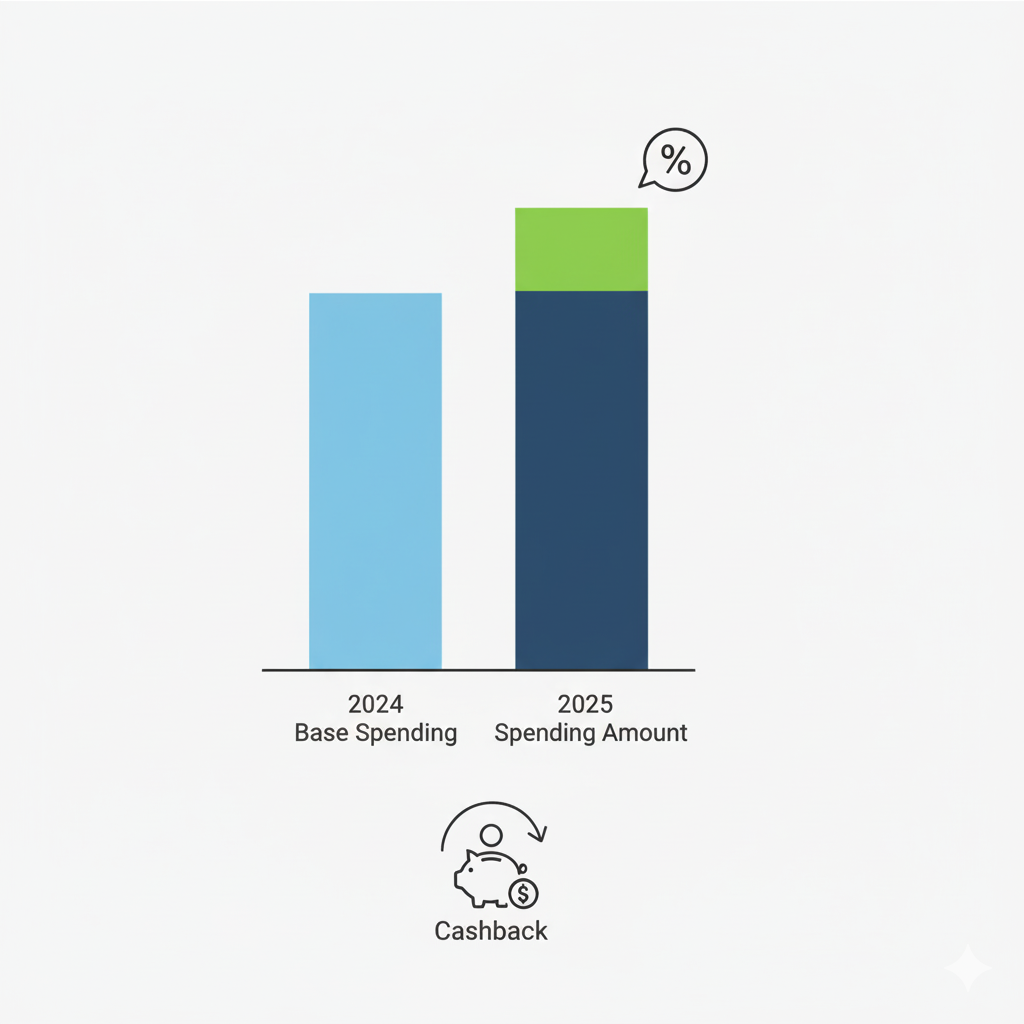 환급은 전체 소비액이 아니라, 이 기준을 **초과한 ‘증가분’의 20%**만 계산됩니다.